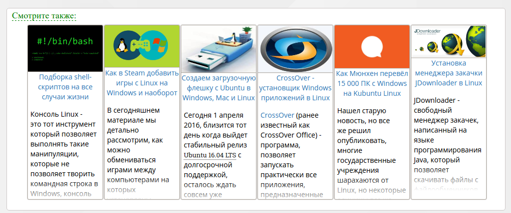 - Хотите сделать блоки шире, регулируйте в стилях выше значение width: 150px; и конечно не забываем о коде <?$RELATED_ENTRIES$(6)?> где вместо выделенного пишем значение сколько вы хотите видеть материлов от 1-20 не более.