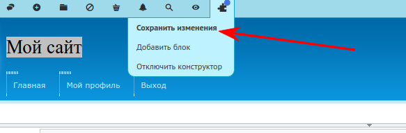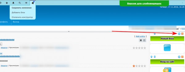 Далее ищем свой блок меню сайта, нажмите на иконку звездочку: