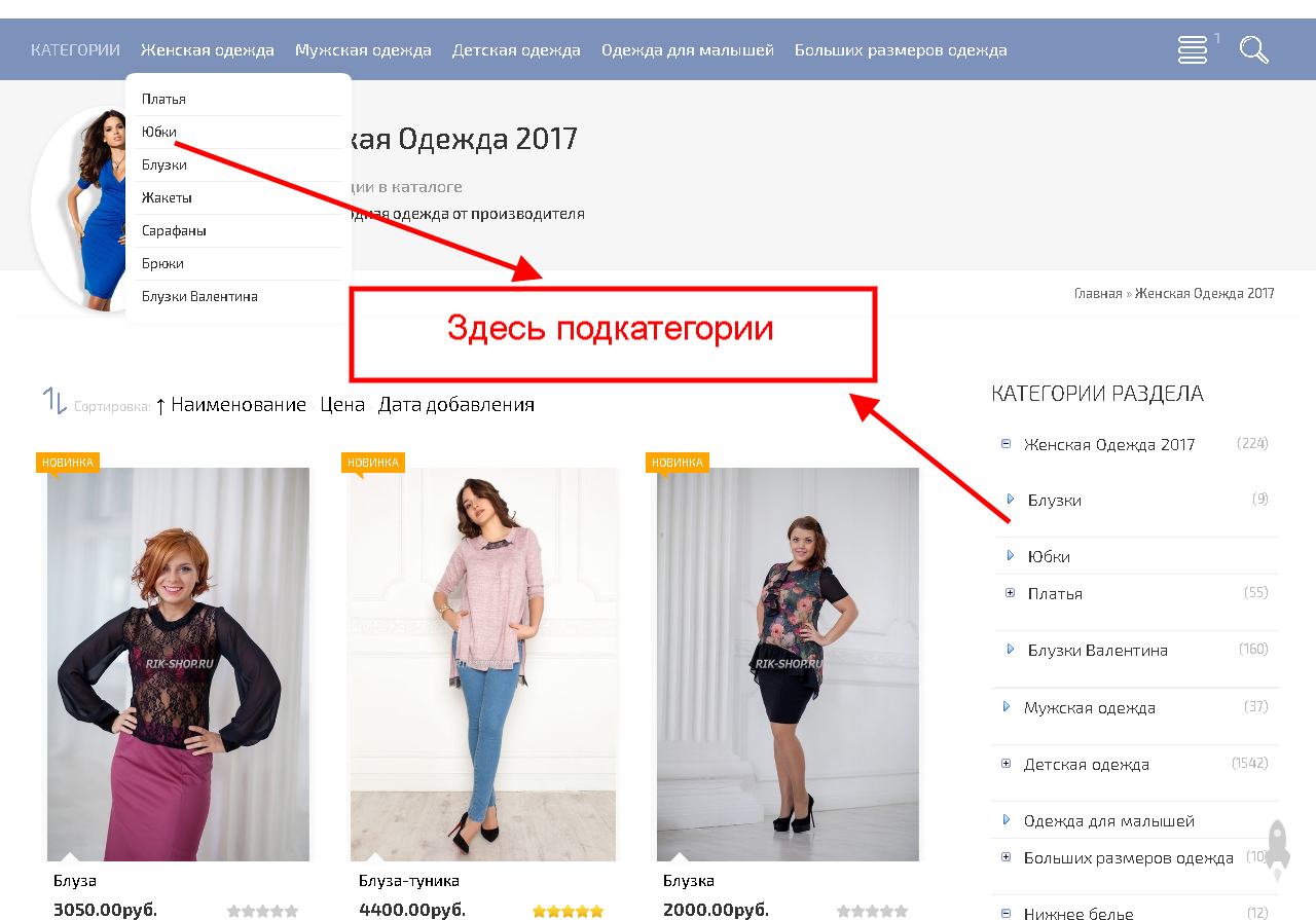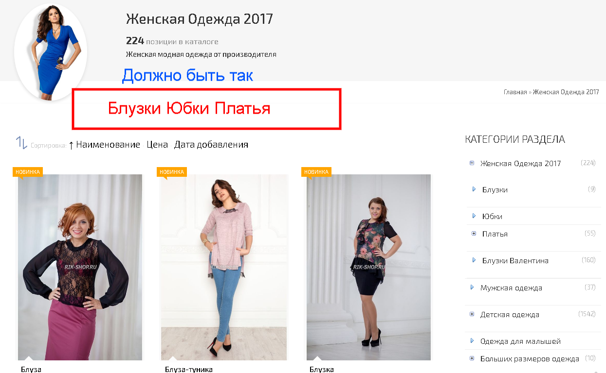 Тоесть заходим например в категорию Женская одежда и видим перед товарами подкатегории.