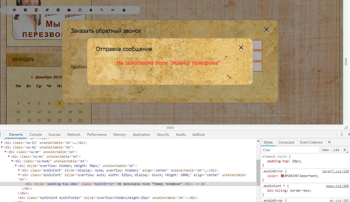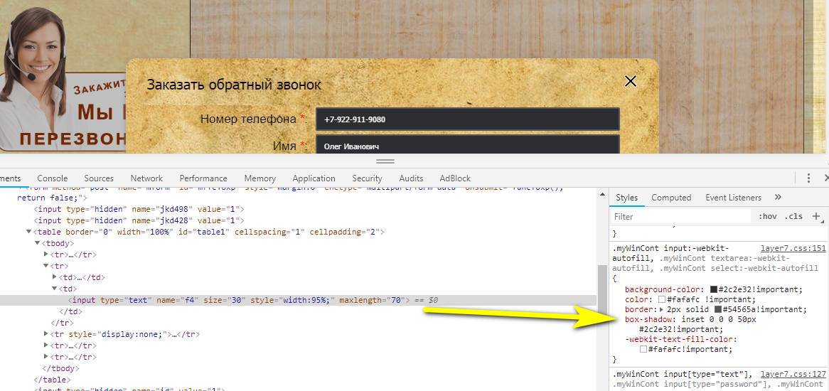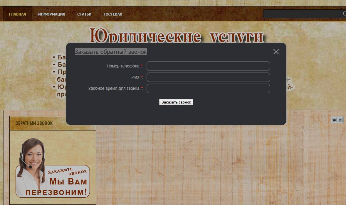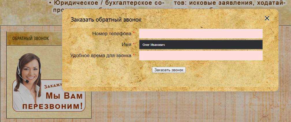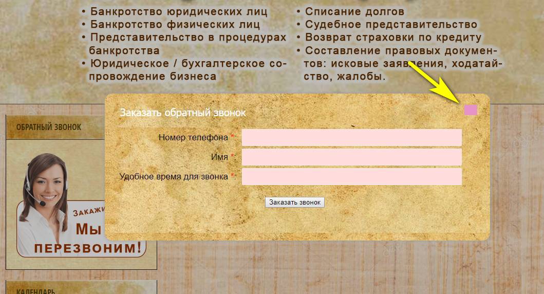 На картинке ниже -- это сплывающее окно формы обратного звонка, вызываемое по баннеру из первого контейнера.