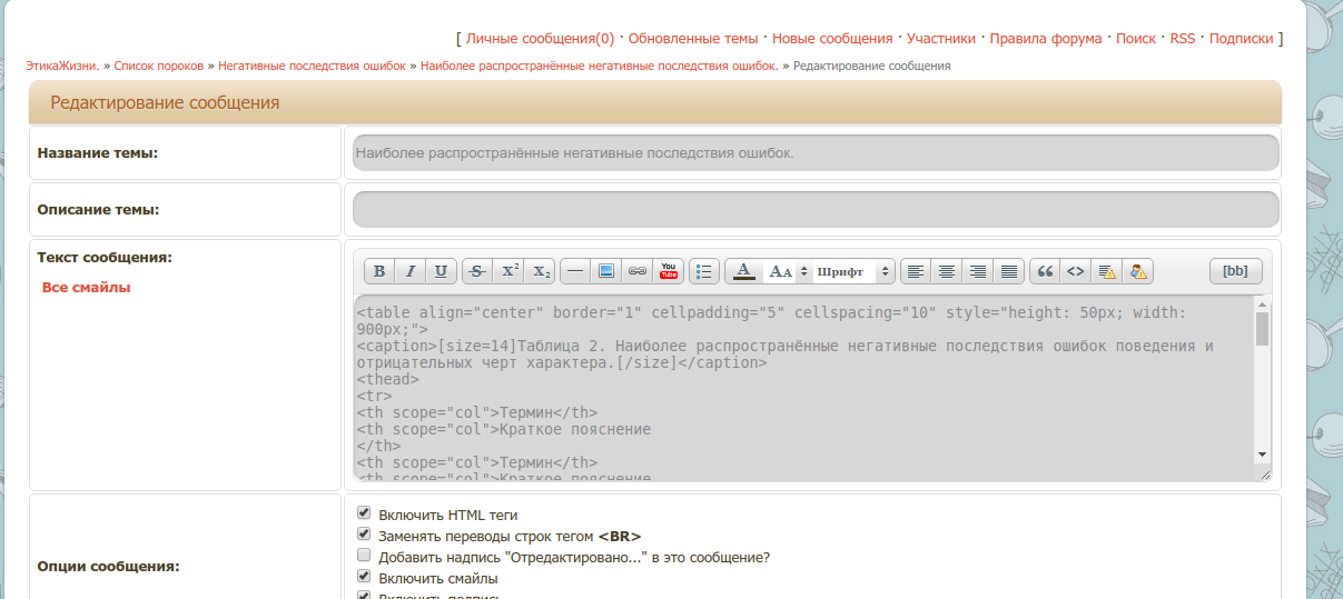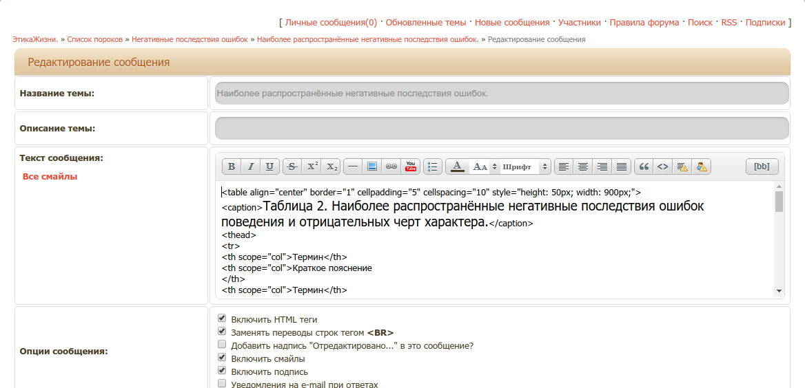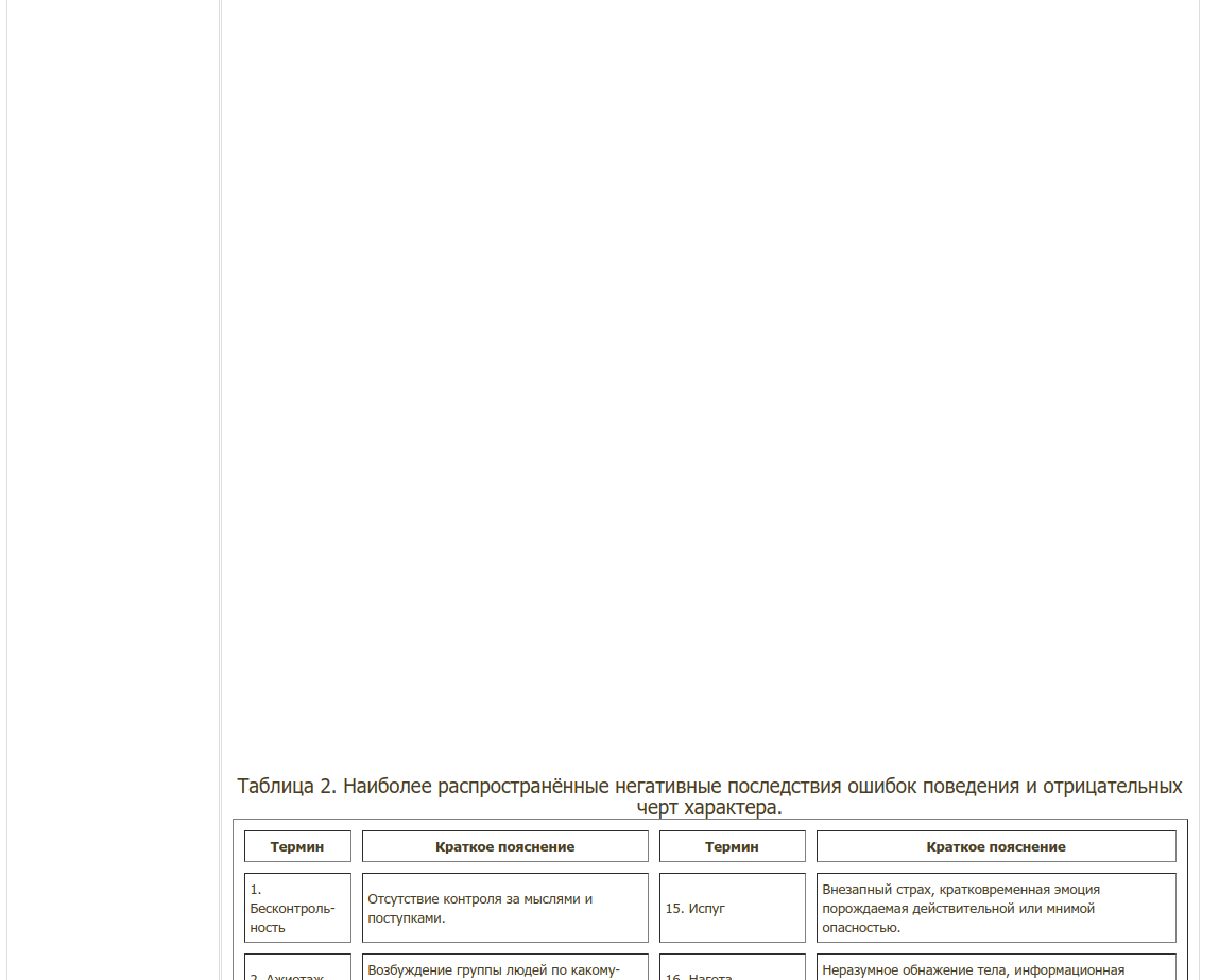 <table align="center" border="1" cellpadding="5" cellspacing="10" style="height: 50px; width: 900px;"> <caption>[size=14]Таблица 2. Наиболее распространённые негативные последствия ошибок поведения и отрицательных черт характера.[/size]</caption> <thead> <tr>