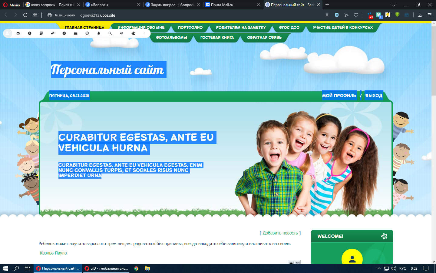 Как убрать с главной страницы слово персональный сайт (заменить) и ещё на английском слова тоже заменить на русские слова.