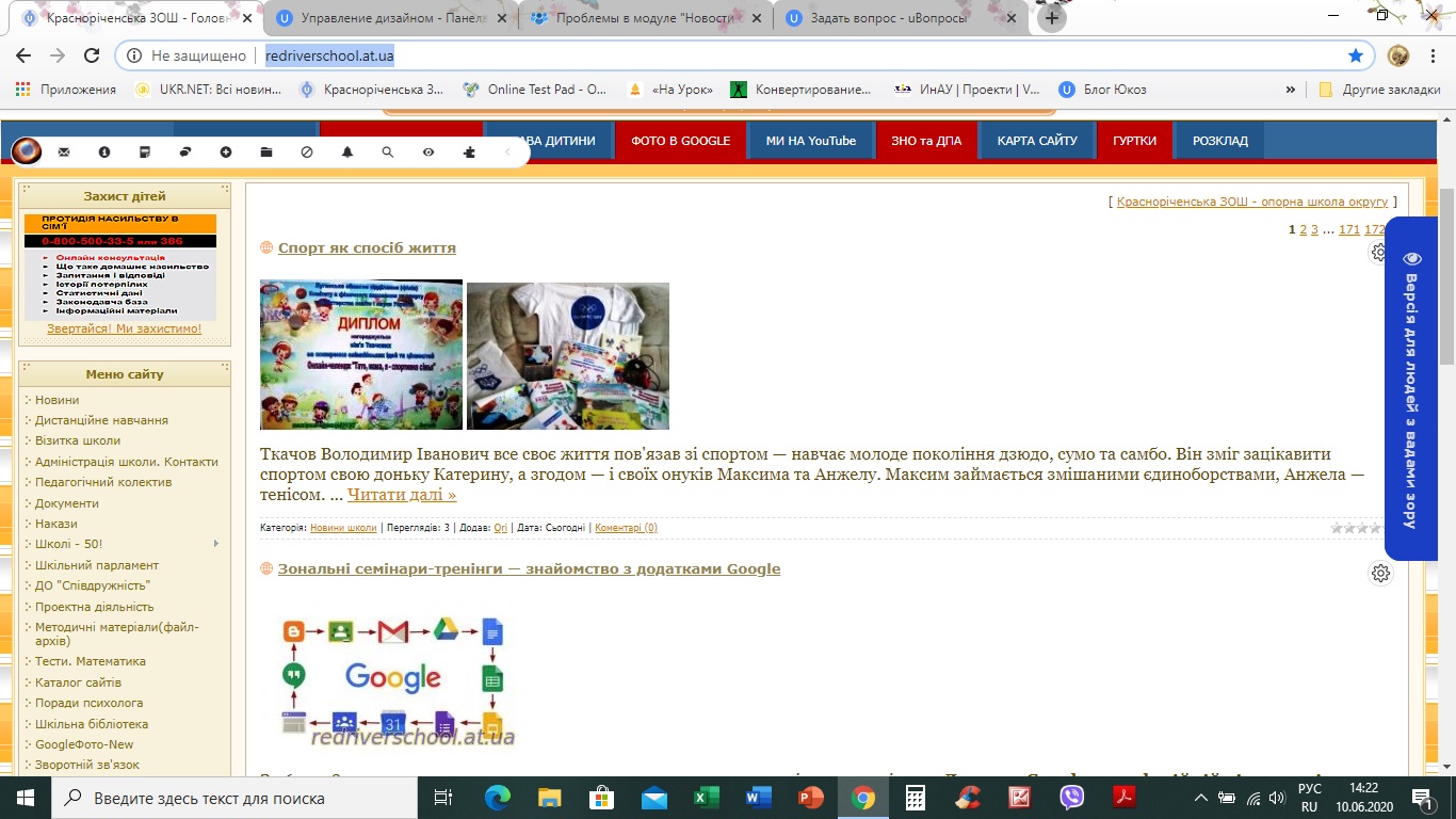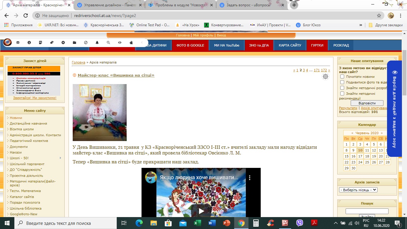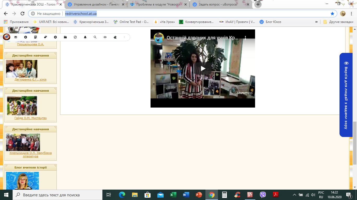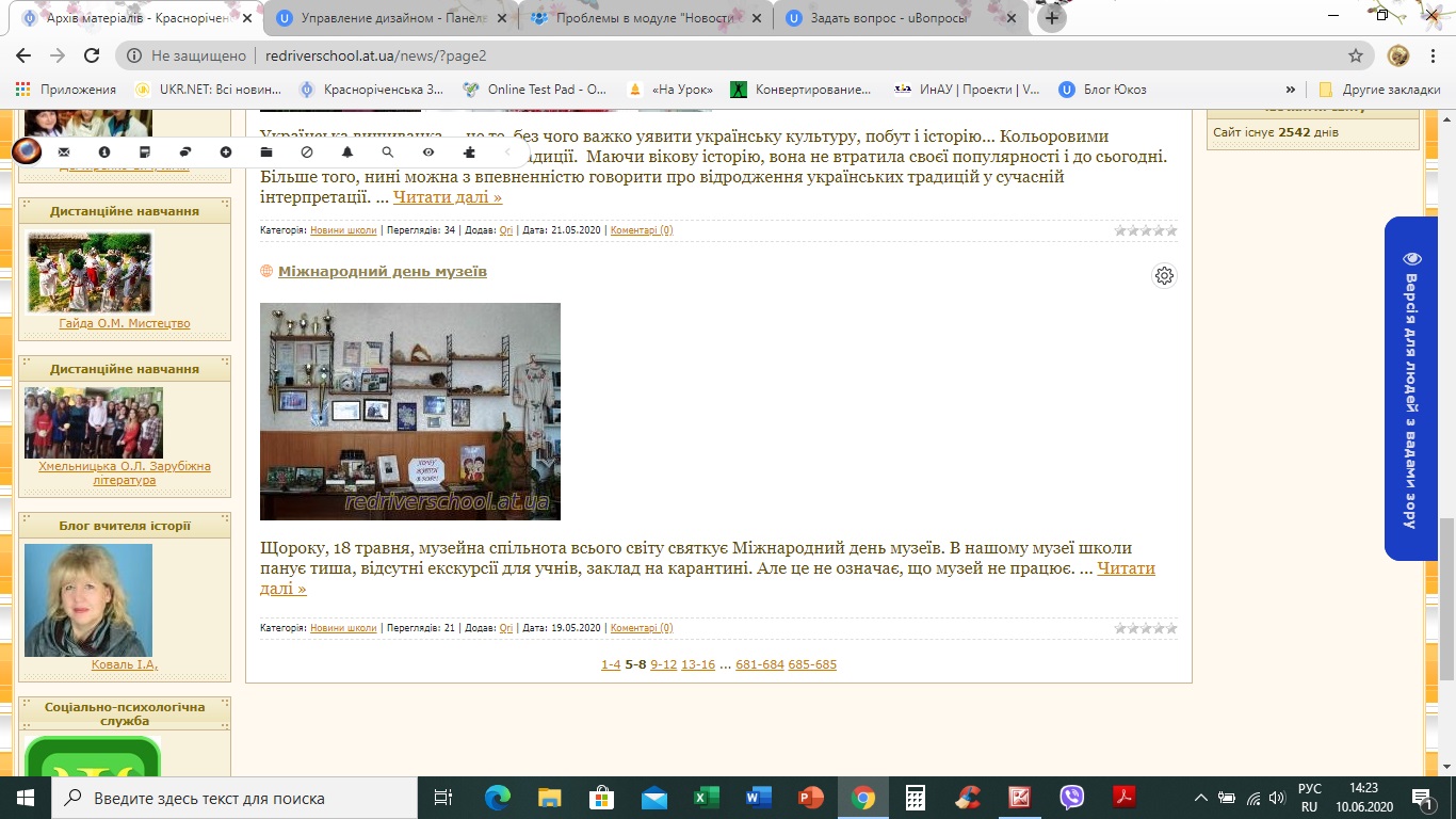Хорошего дня! Добавляла новость от 10.06. Всё сделала как обычно - текст, фото, вставила видео с канала школы, которое сама и загрузила. В архиве всё отображается нормально - переключатели страниц вверху и внизу, боковые панели. На главной странице правая боковая панель исчезает, к нижней публикации уже нет ни комментариев, ни просмотров, переключателя страниц внизу нет. В настройках модуля посмотрела - "переключатели страниц вверху и внизу" отмечено. Как исправить, подскажите, пожалуйста :-(