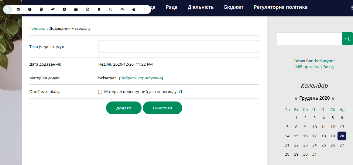Не запускается визуальный редактор при добавлении новости на главной странице. А появляется то, что на скрине