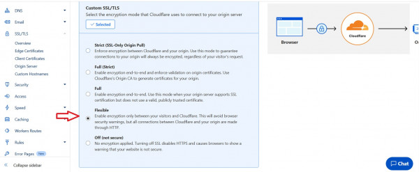 На испытуемом сайте работает Гибкий сертификат Cloudflare (Flexible):