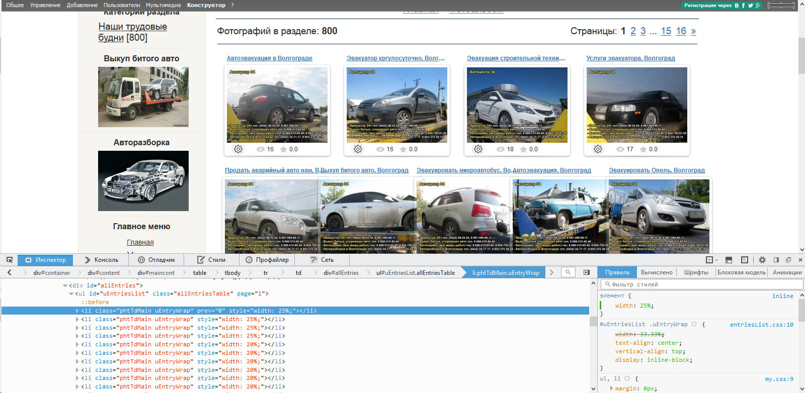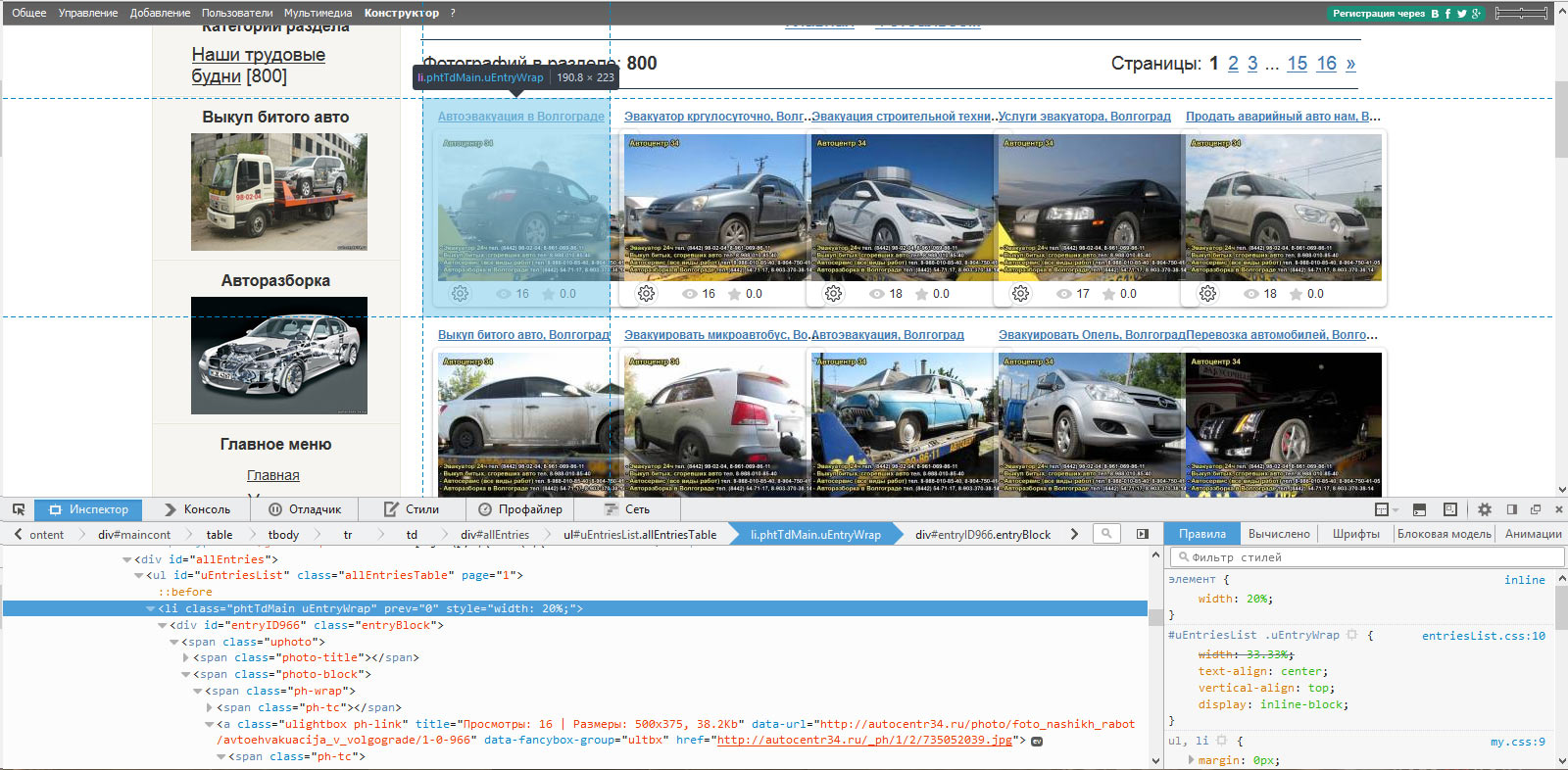 Имеется сайт, на котором съехала вёрстка фотоальбома. Фотографии по горизонтали заходят друг на друга.