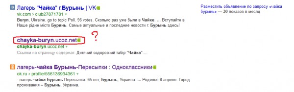 Домен к сайту был прикреплен или нет? Текущий адрес, который вы вводите в поиск chayka-buryn.ucoz.net закрыт для индексирования посредством файла robots.txt