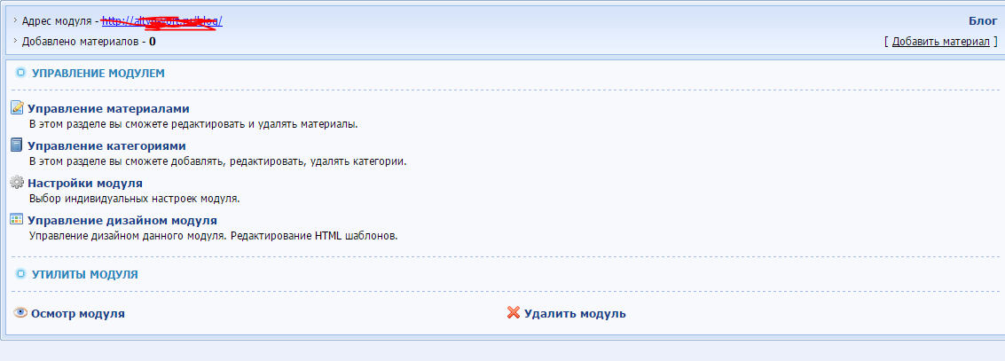 пройдите в панель управления, нажмите на модуль блог и можете удалить его, если он вам совсем не нужен. Или можете пройти в подуль пользователи- группы пользователей- установка прав для всех групп и там снять галочки прав добавления материалов для групп, которым вы хотите запретить это действие, сохраните