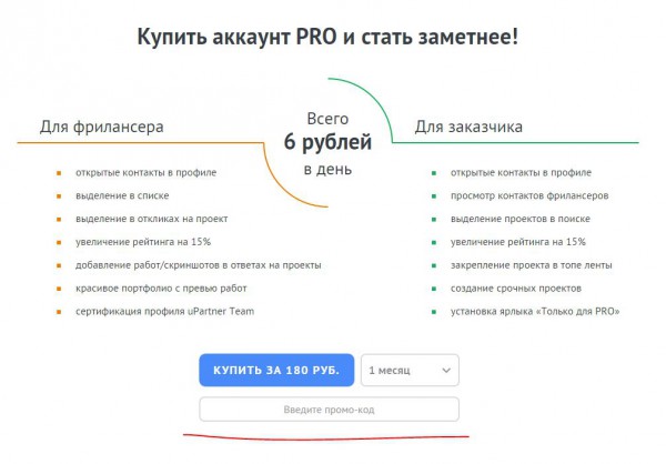 при покупке PRO-аккаунтов на бирже фриланса uPartner.pro — 40% по специальному промокоду.