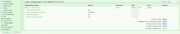 Если услуга была оплачена, но как видно на скриншоте выше, она отменена вами, и вы ее отменяли так как чтобы отменить еще нужно и ответ на секретный вопрос вводить, кроме вас это никто не выполнит.
